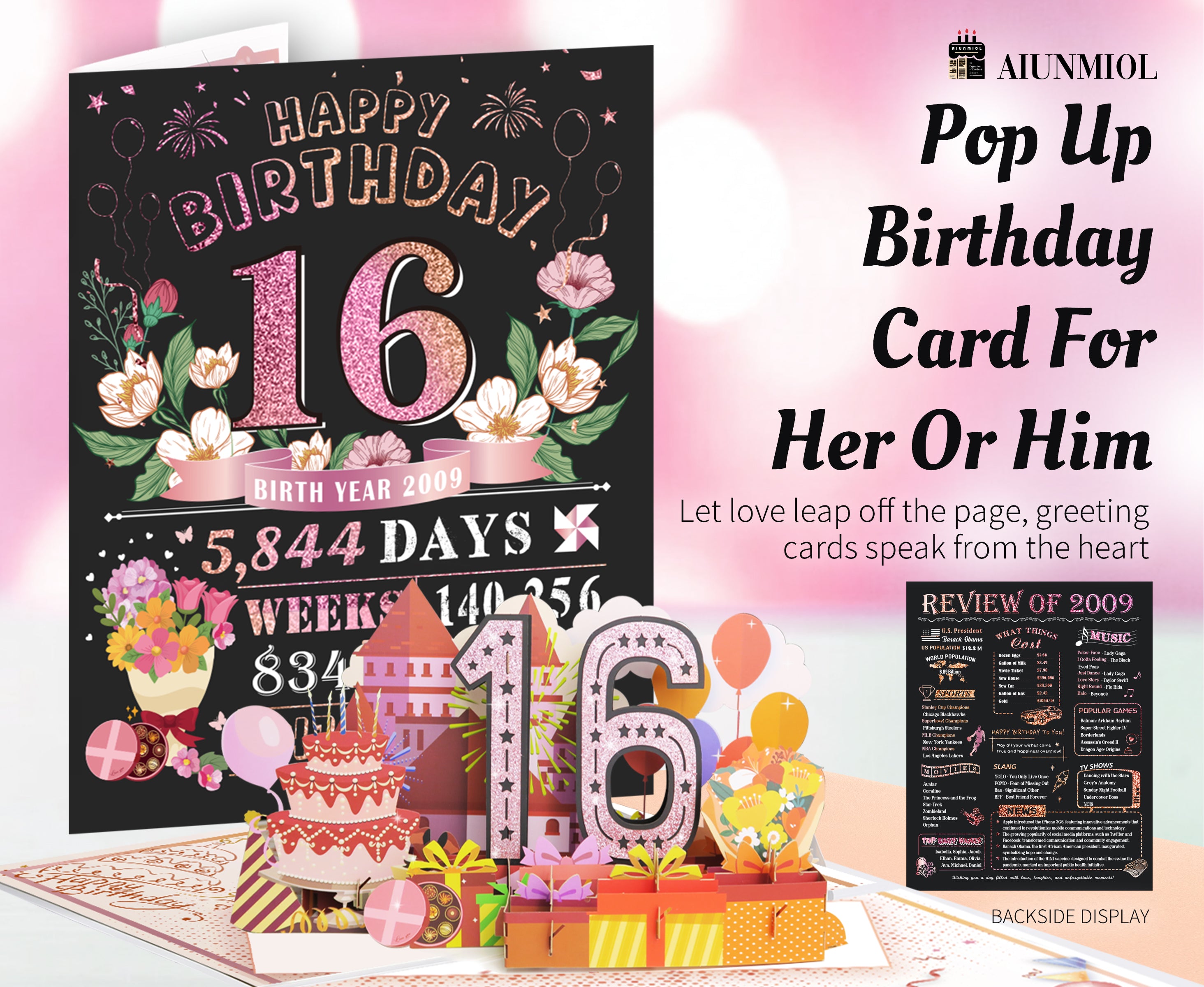 Aiunmiol 10th Birthday Card for Girl Daughter, Pop Up 10th Birthday Gifts Cards for Granddaughter Niece, Happy 10 Year Old Birthday Decorations for Daughter Girls, Review of 2015, Pink